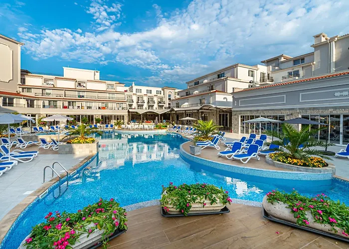 Doté d'une piscine extérieure, Martinez Hotel All Inclusive Sozopol est situé dans le voisinage de "Harmani Beach" à Sozopol, à 7 minutes de marche de la Plage Harmani. De plus, l'hotel offre un jardin vert avec des palmiers et des arbres, parfaits pour se détendre.